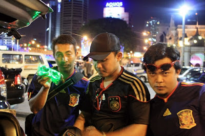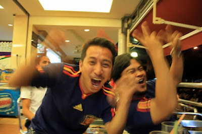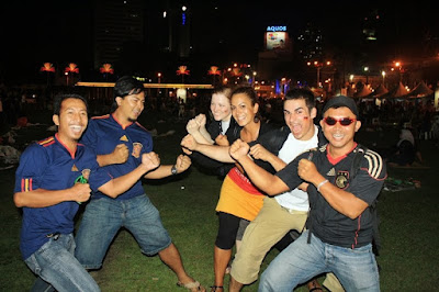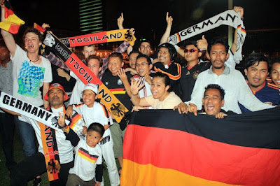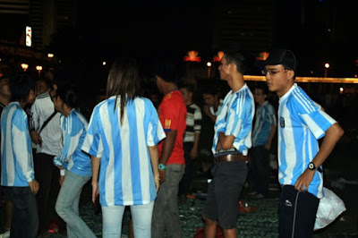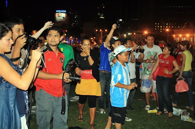 Kalau dilihat la kan, ini lah dia yg dinamakan demam bola..membe sokong team ni dan kalah, memang kene bahan punya..tu mmg adat penyokong2 bola neh..br lah dikatakan semangat..muahahaha..semangat la sngat.. Malam yg lepas, aku, jai, gmie n rinto g dataran merdeka tuk melihat sendiri semarakkan semangat FIFA 2010 antara perlawanan Argentina dan Jerman. Fuhh, mmg beso gile babas screen dia..pueh ati lah tgk..ramai pulak tu..best dan meriah sungguh..Kemeriahan makin menjadi2 bila game habis dgn kemenangan berpihak pada negara Jerman, 4-0 beb..ahaks..